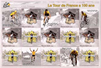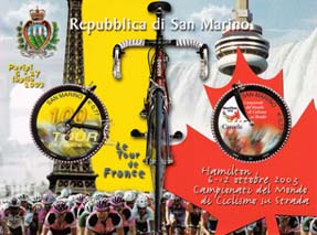 SOGGETTO UNO DEI FRANCOBOLLI E' DEDICATO AL TOUR DE FRANCE |