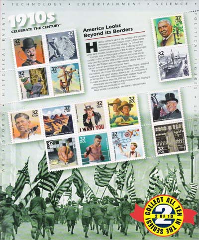SOGGETTI CHARLIE CHAPLIN FEDERAL RESERVE G.W.CARVER MOSTRA ARALDICA TELEFONIA APERTURA CANALE DI PANAMA JIM THORPE GRAND CANYON ENTRATA NELLA 1° GUERRA MONDIALE BOY SCOUTS PREMIO NOBEL A W. WILSON PRIMO CRUCIVERBA JACK DEMPSEY COSTRUZIONI PER BAMBINI LEGGE SUL LAVORO MINORILE |
