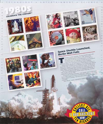 SOGGETTI PROGRAMMA SPACE SHUTTLE MUSICAL "CATS" SAN FRANCISCO 49ERS RITORNO OSTAGGI PATTINAGGIO ARTISTICO TV VIA CAVO MEMORIAL VETERANI VIETNAM COMPACT DISK CABBAGE PATCH KIDS THE COSBY SHOW CADUTA DEL MURO DI BERLINO VIDEOGAMES E.T. PERSONAL COMPUTER CULTURA HIP-HOP |