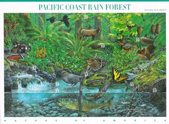 SOGGETTO LA SERIE RAFFIGURA LA FLORA E LA FAUNA DELLE FORESTE UMIDE DEL PACIFICO |